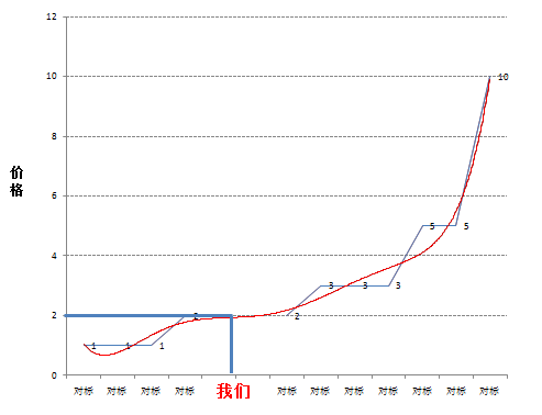 第二步,調(diào)研出競爭者們的價格分布區(qū)間。