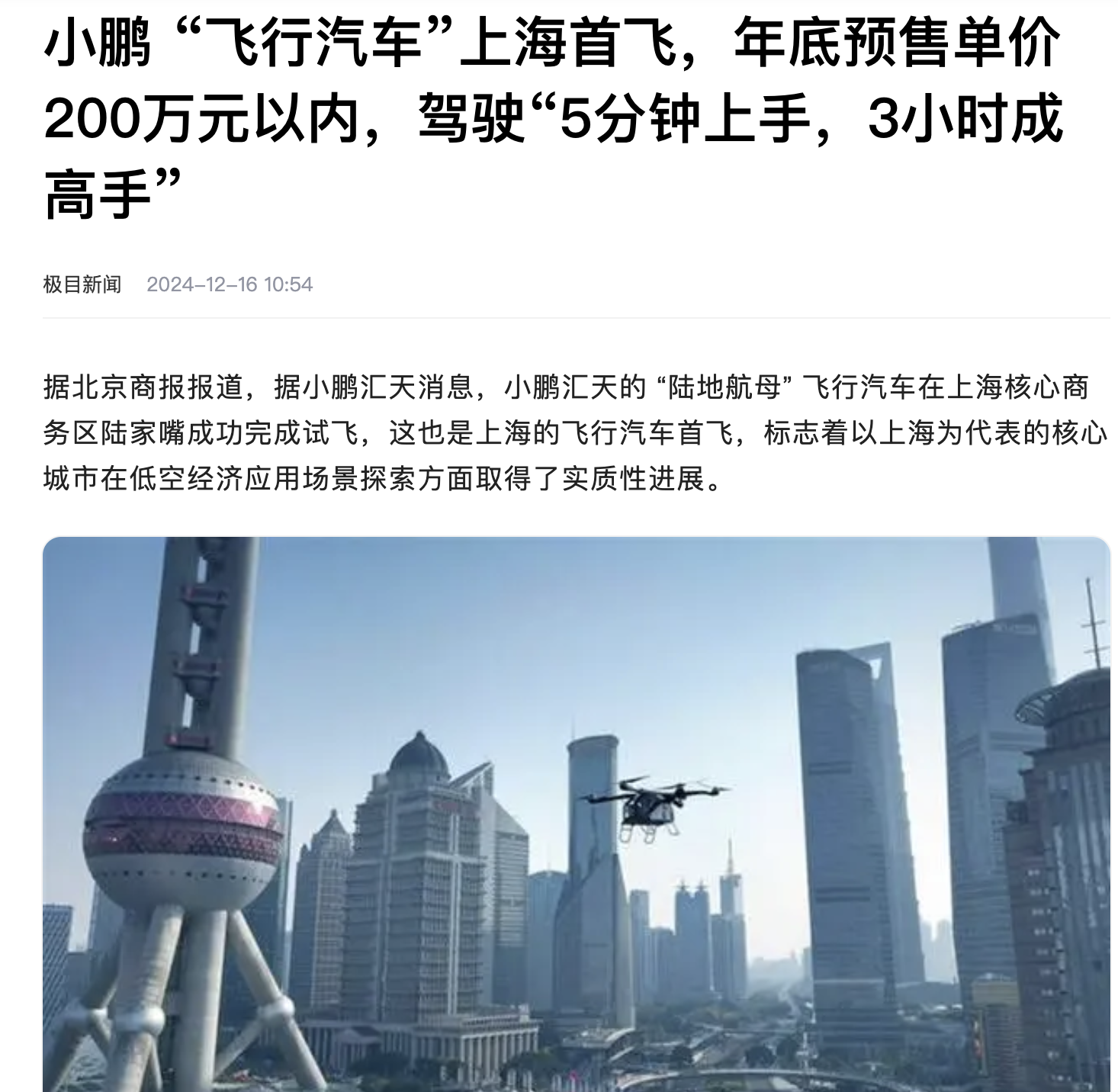 毫無疑問的是,汽車到飛行器的人類新時代即將開啟。